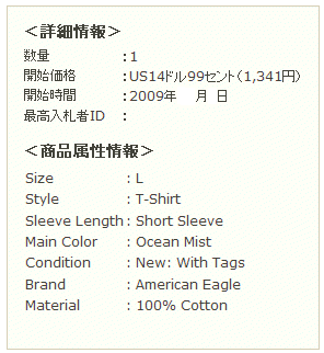 商品を検索し、入札したい商品を選びクリックします。 商品説明と出品者情報のチェックを済ませます。 |