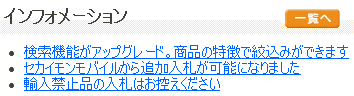 インフォメーションコーナーではセカイモンの新機能、不具合・メンテナンス情報、サポート案内、特集や注意事項が掲示されます。 |
