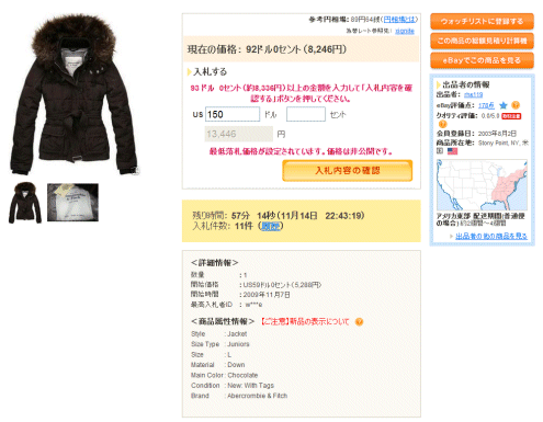 まずは、入札したい・チェックしたい商品のページを開きます。 |
