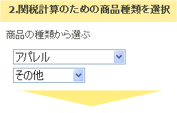 関税計算のために必要な商品種類の選択をプルダウンメニューから選択します。 |