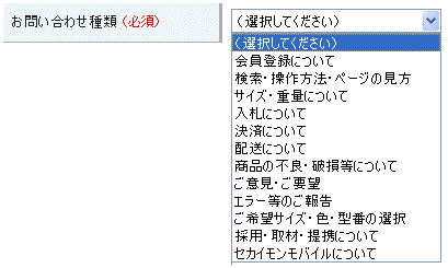 ![]() お問い合わせページ お問い合わせ種類プルダウンメニュー ![]() |